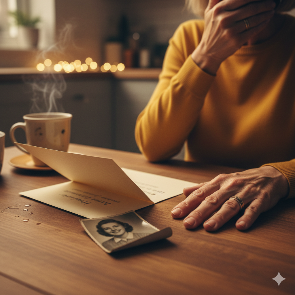 The first card arrived when she was eighteen. It came three days before her birthday, tucked neatly between grocery store